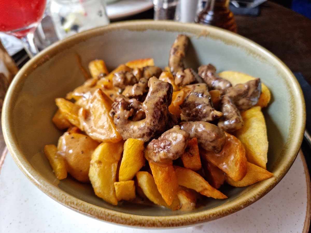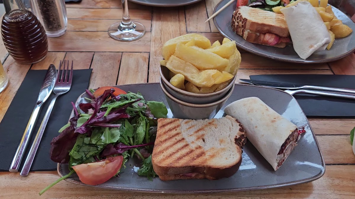 “Nice pub/restaurant fast food I picked the DV8 special, which consisted of chicken slices in peppers onions melted cheese in a spicy marinade I was asked to choose between chunky or skinny chips The large soup-like dish arrived piled to the brim I thought at first Wow this is value for the price Luckily there was a large plate that accommodated it I took off the chicken peppers etc and to my surprise, the rest of the bowl was 3/4 full of skinny chips Now that's a lot of chips I was expecting chips on the side I would never have eaten from the dish as it was, anyway. Maybe it's me but I think , a tad too much for that meal”